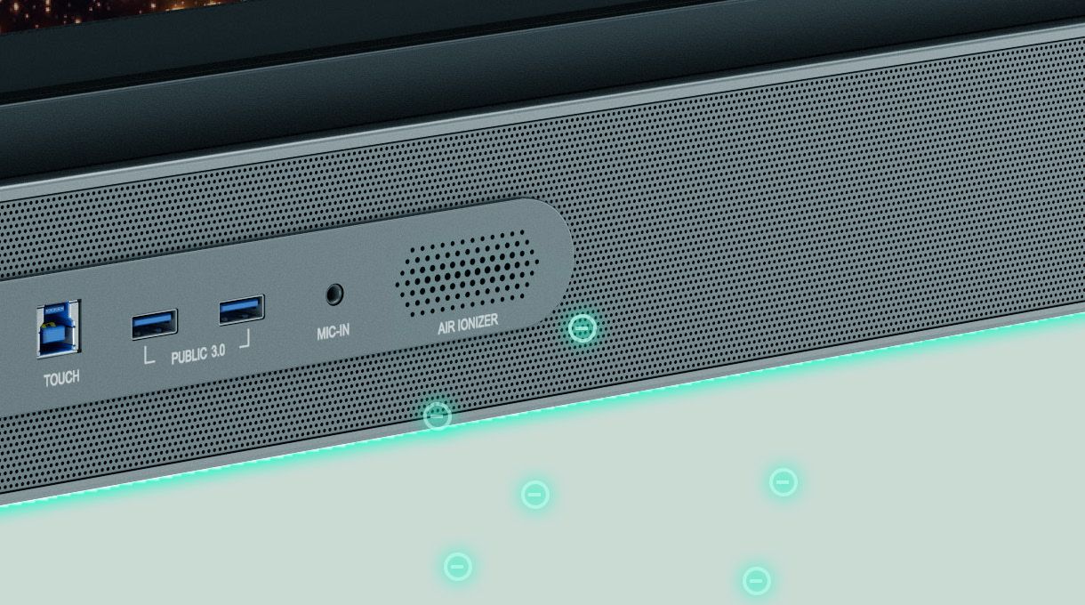 TÜV certified eye-care technology, antibacterial screen coating, and air quality monitoring protect user health and wellbeing.